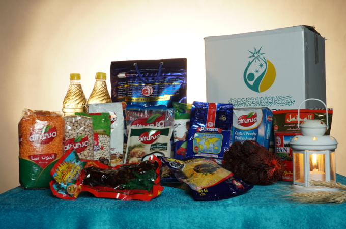 حصة غذائية شهرية تتسلمها العوائل المحتضنة بالإضافة إلى ما يتوافر من لحوم.