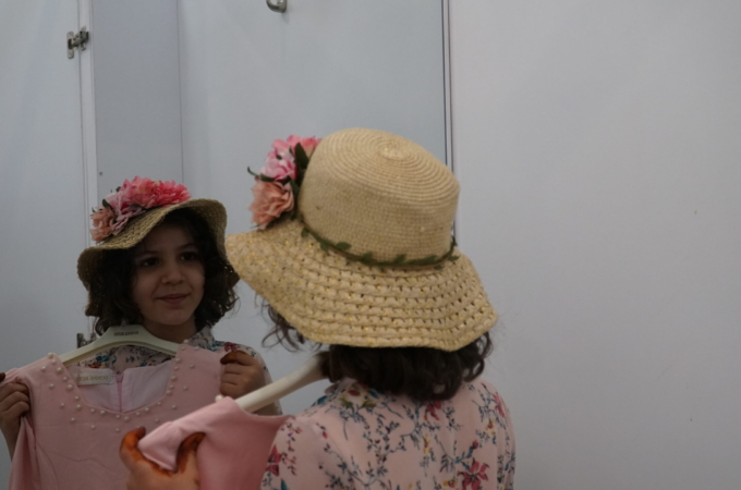تقع ضمن مركز الأنجم الزاهرة قاعة مخصصة للمواد العينية يدخلها الطفل اليتيم ويختار الملابس التي تعجبه بمساعدة ملاكاتنا، ويقيسها في غرف قياس موجودة في القاعة نفسها. ويأتي ذلك جزءاً من سعينا إلى تشجيع أبنائنا اليتامى على اتخاذ قراراتهم بأنفسهم ومساعدتهم على بناء ثقتهم بها.